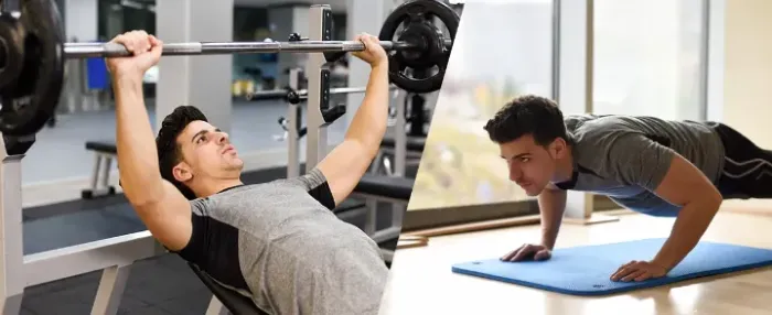 胸肌: 槓鈴臥推 x 8-12次 -> 立刻接上啞鈴飛鳥 x 12-15次。