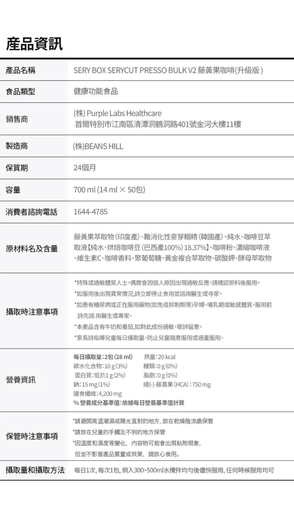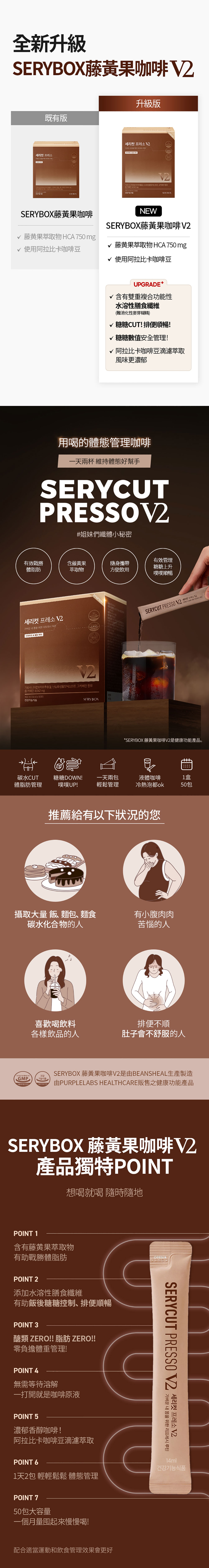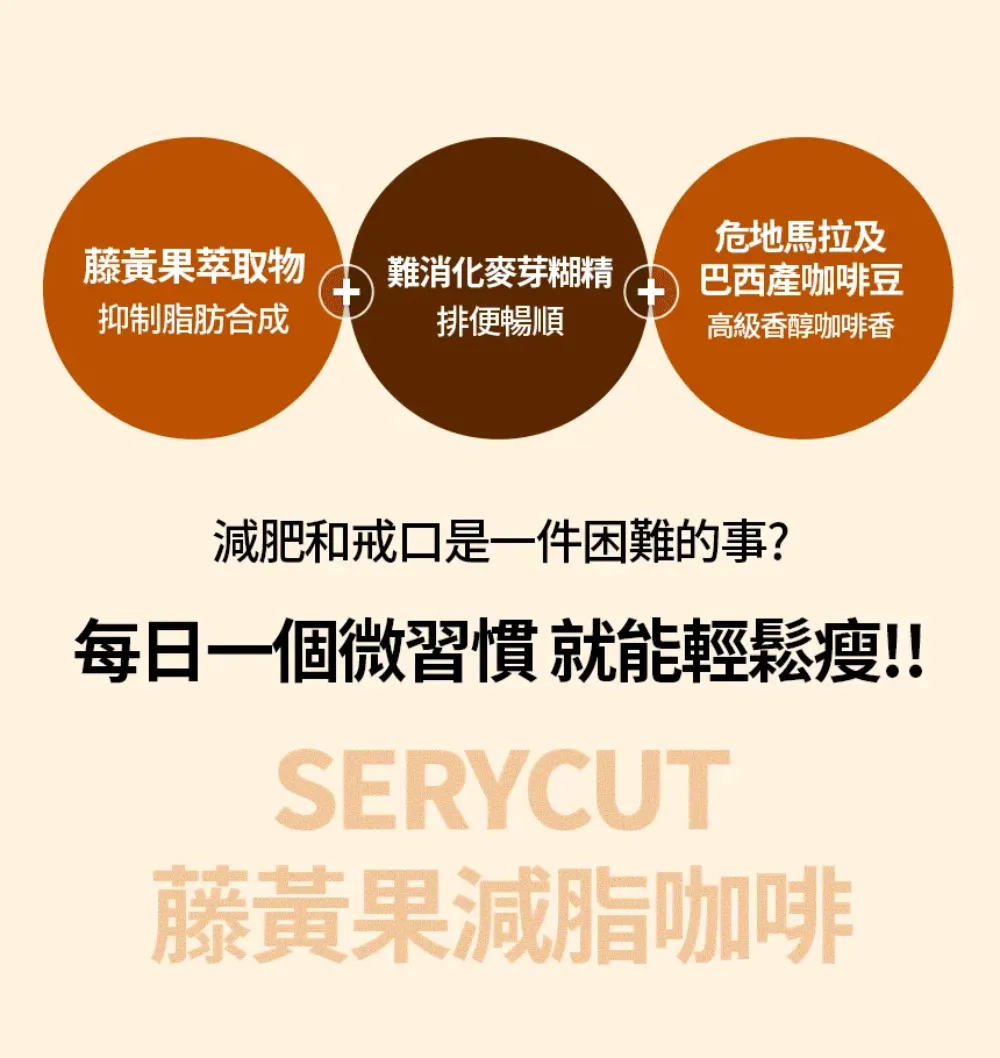 【首款減脂咖啡】SERYCUT 藤黃果減脂咖啡V2|燃脂穩醣+提高飽腹感|50包裝 | 台灣出貨